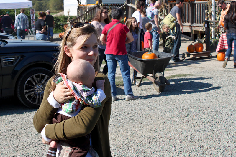 This is one of my favorite traditions. Each October we pick a weekend, go out to breakfast and spend the day at the pumpkin patch. This is the fourth year we've made the trek to Carnation with the Trudelles, but this time around we had a couple new additions to the group---Rach and Steve's adorable two-month-old baby boy, Miles, oh and my entire family. The more the merrier, indeed.